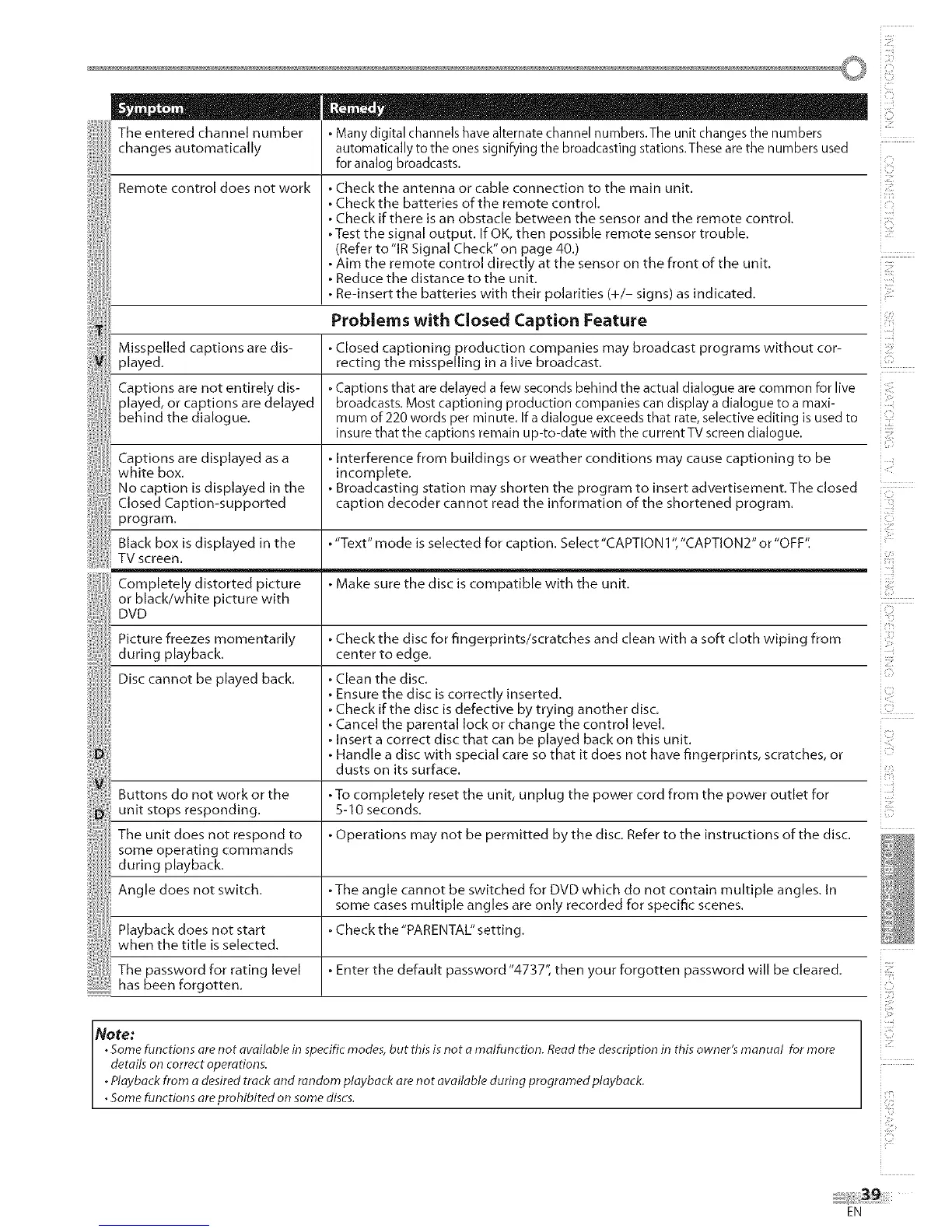 Problems with Closed Caption Feature