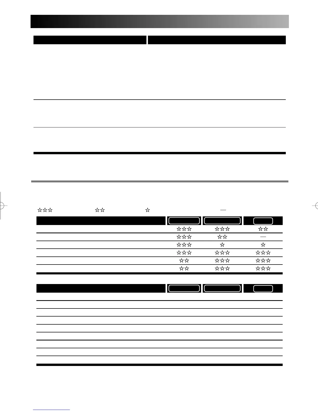 : Most suitable. : Can be used. : Some functions are limited. : Cannot be used.