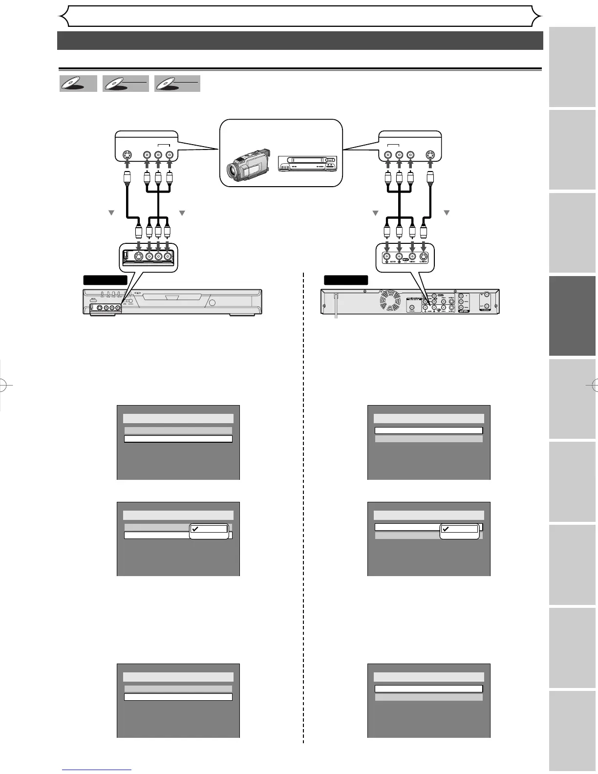 Connect the external source properly to the DVD recorder by using input jacks either LINE2 (Front) or