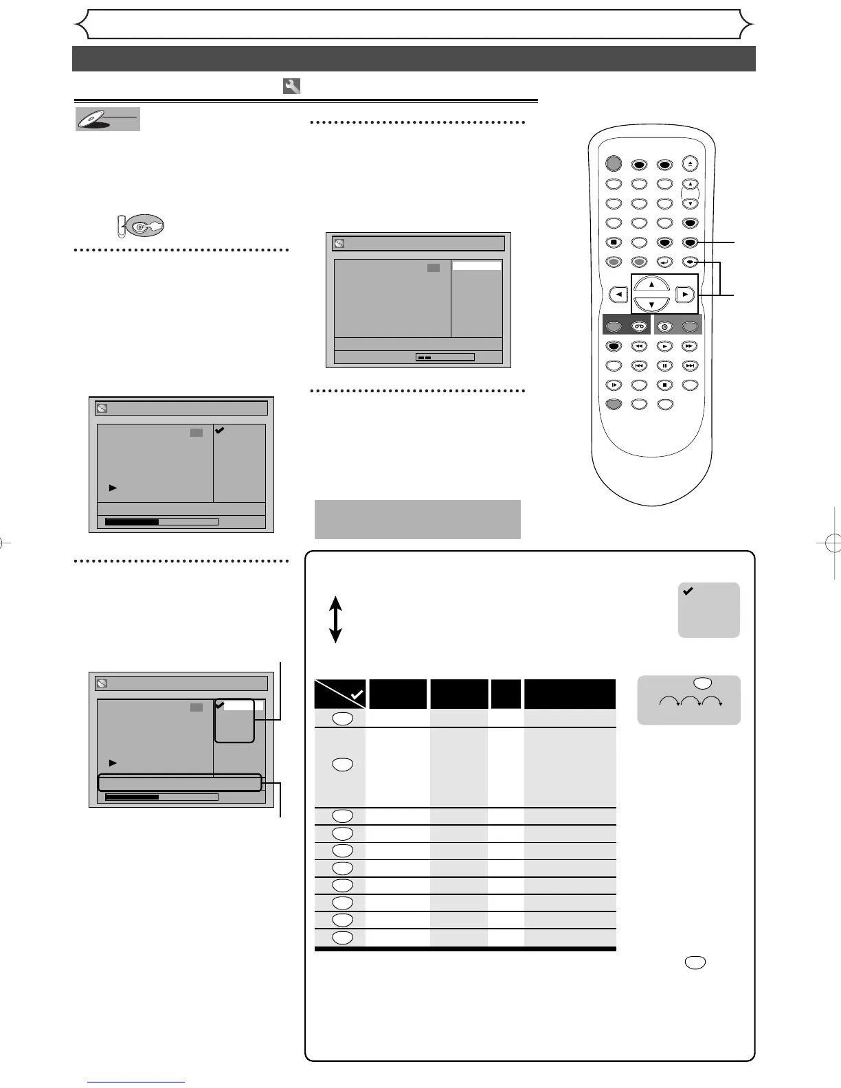 : Follow the list below, press the Number buttons repeatedly until the