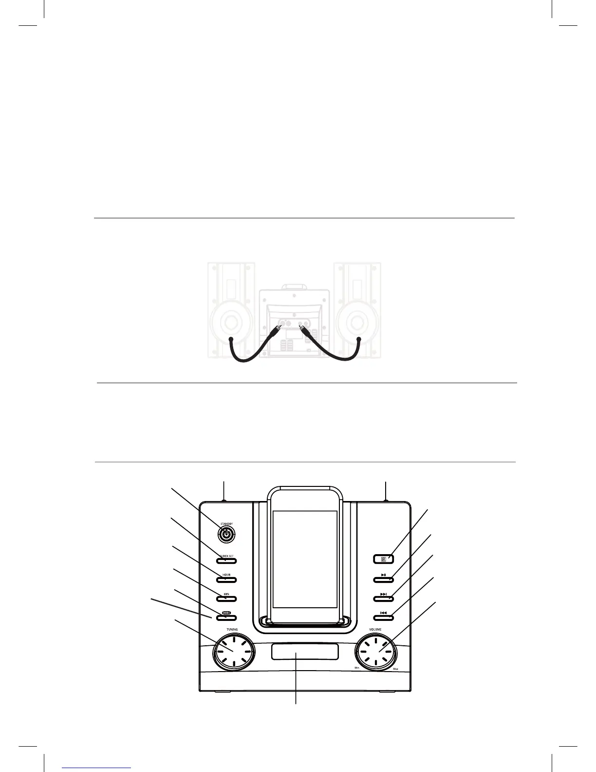 1. Connect the external speakers to the unit by plugging the speaker cables into the