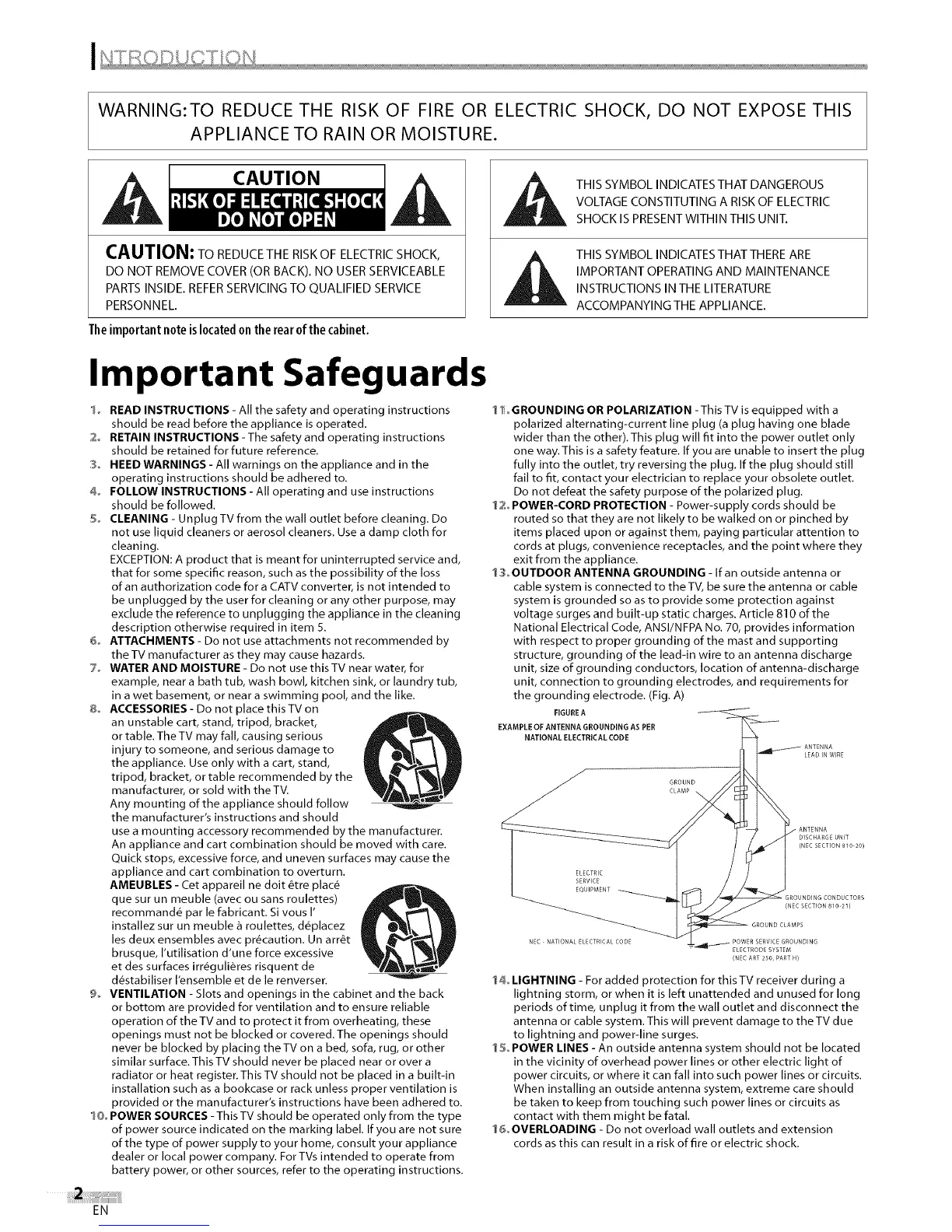 11 °GROUNDING OR POLARIZATION -This TV is equipped with a