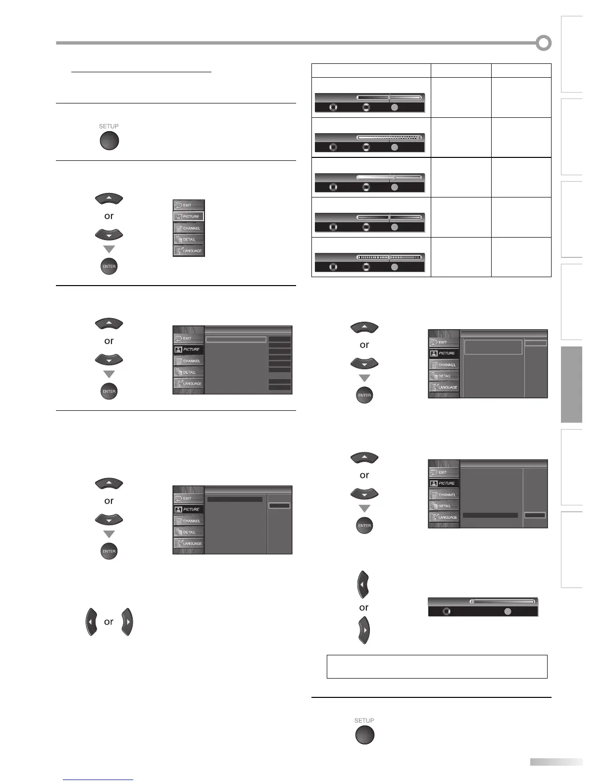 • To cancel picture adjustment, press [SETUP].