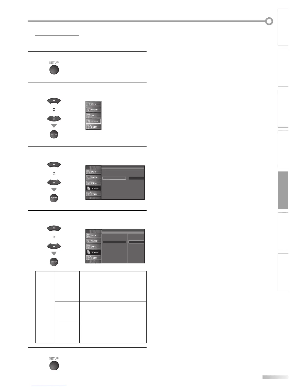 L] para seleccionar “DETALLE”, y