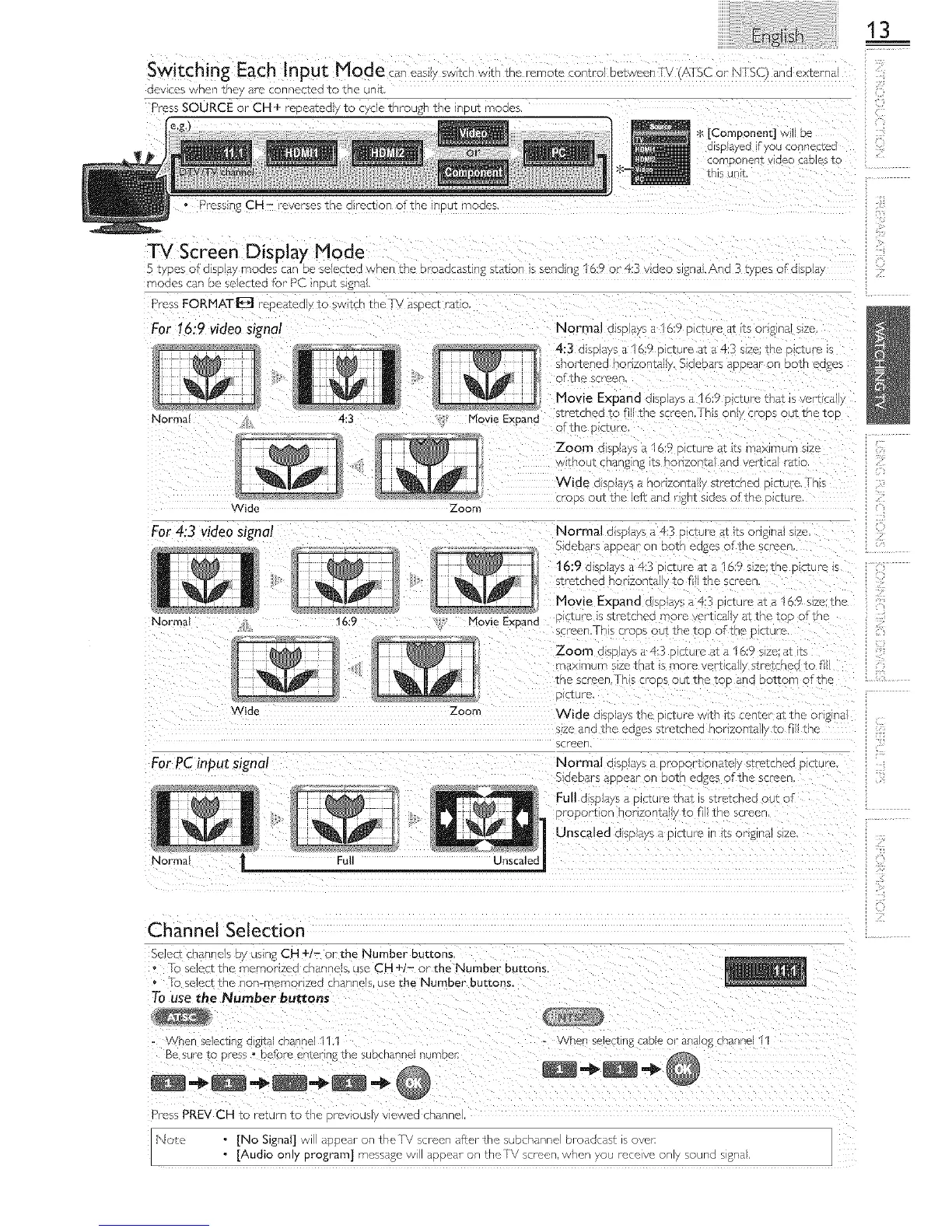 _ ' '-:-_w,tcnmg Each'-|nputMode c___2_,switchwththeremotecontrolbetweenTAZSCor NTSC ana exzerna