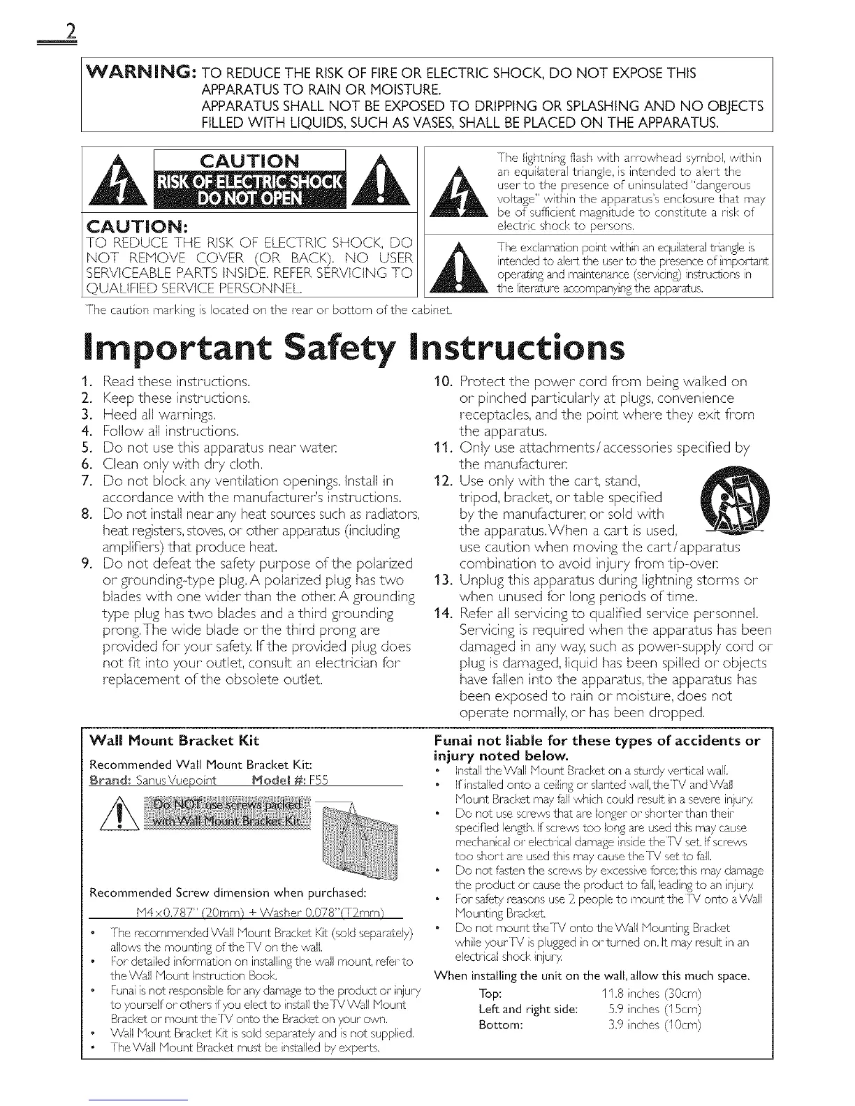 Do not mount the]V onto the Wall Mounting Bracket
