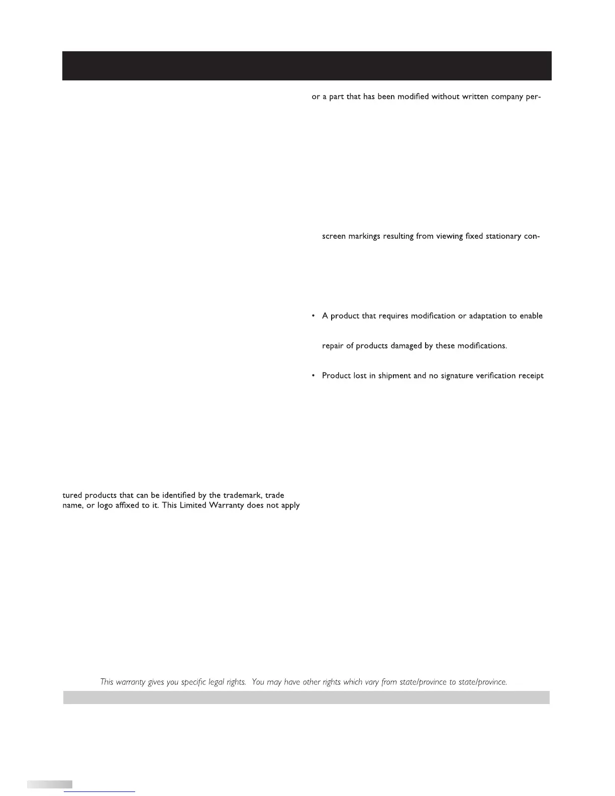 This Limited Warranty does not cover: