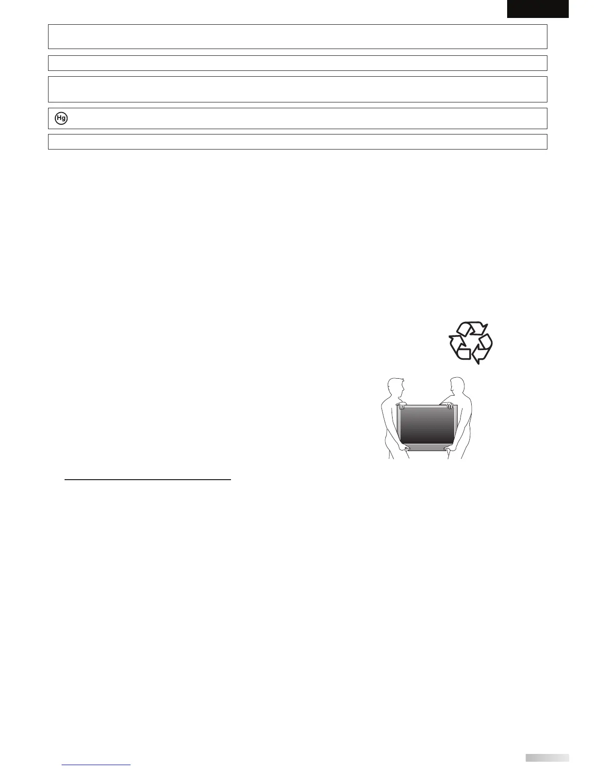 LAMP IN LCD CONTAINS MERCURY, DISPOSE ACCORDING TO LOCAL, STATE OR FEDERAL LAW.