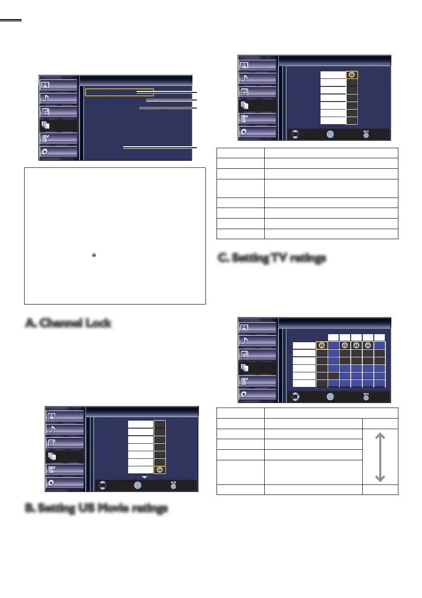 1 Use ā²/ā¼ to select [US TV Ratings Lock], then press