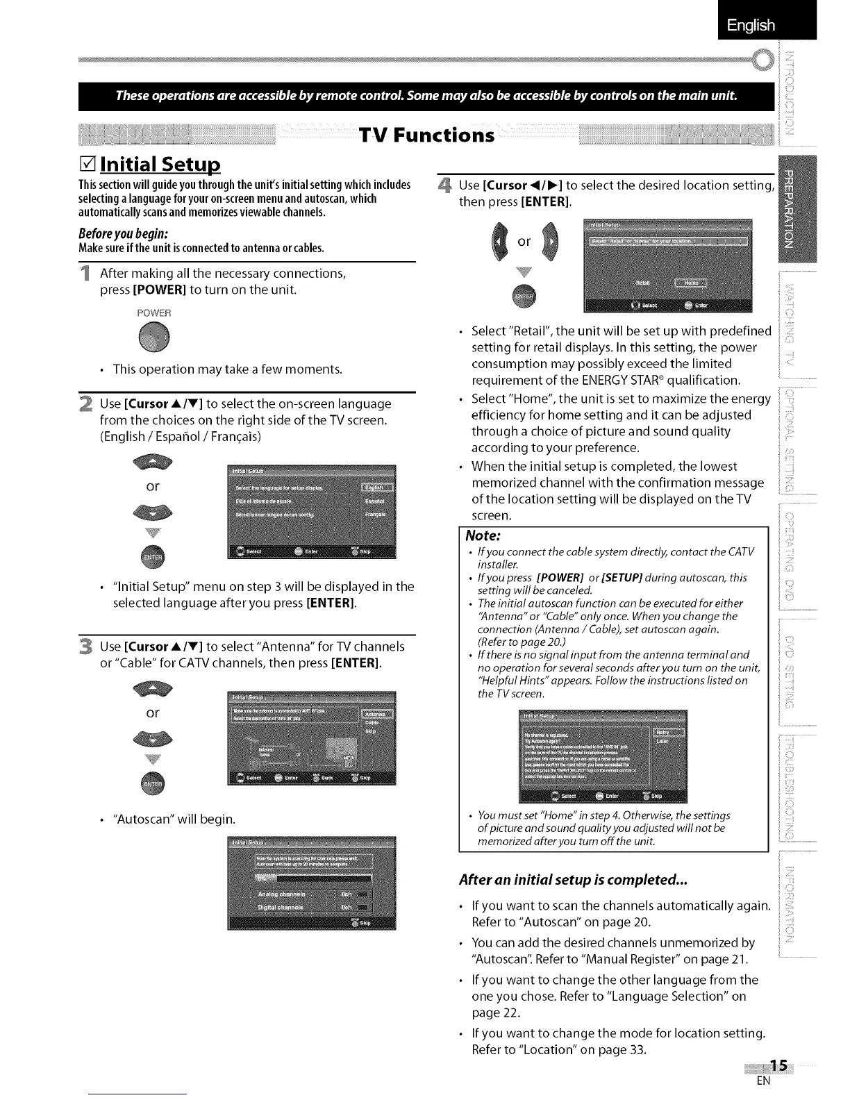 • Theinitial autoscan function can be executed for either