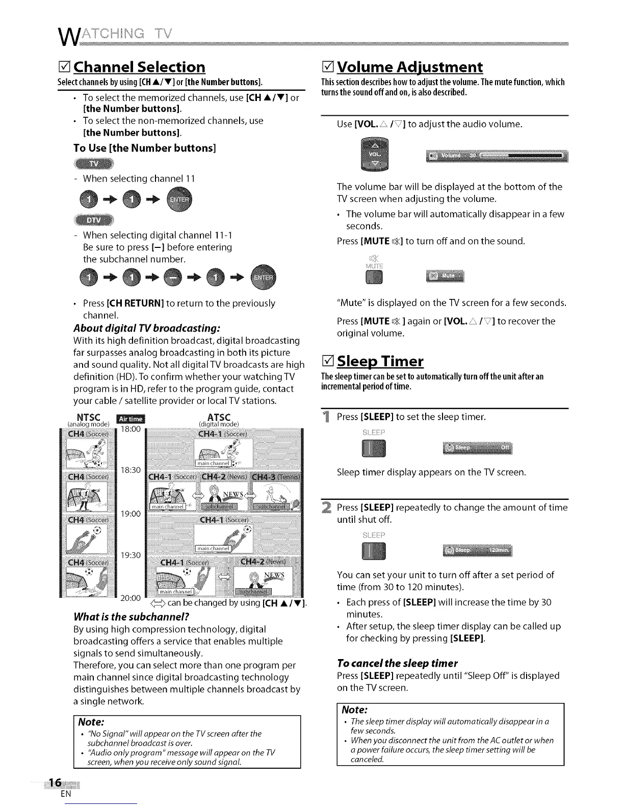 Sleep timer display appears on the TV screen.