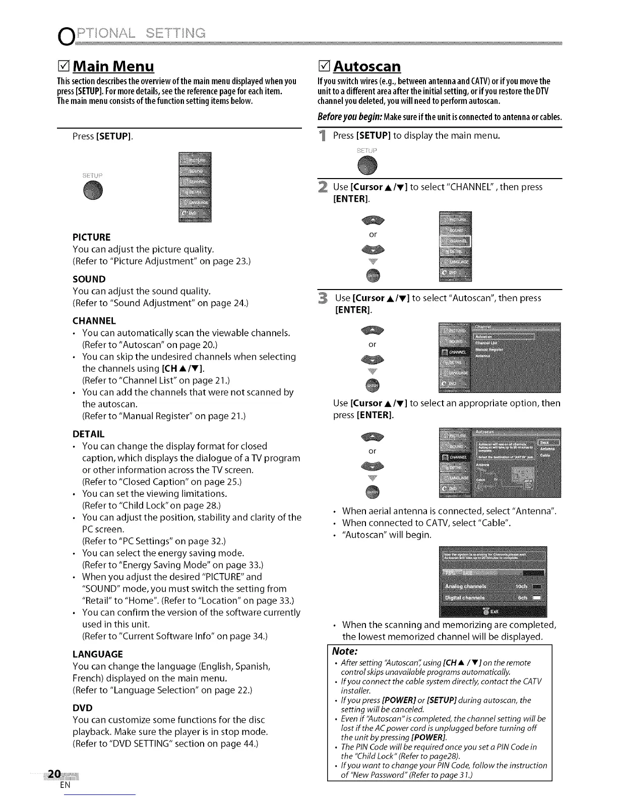 • After setting "Autoscan" using [CH •/V] on the remote