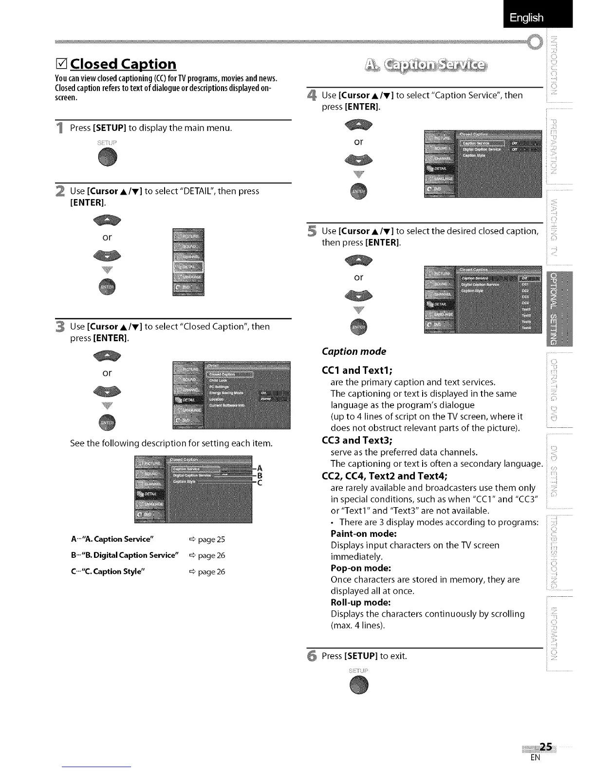 3 Use [Cursor A/v] to select "Closed Caption", then