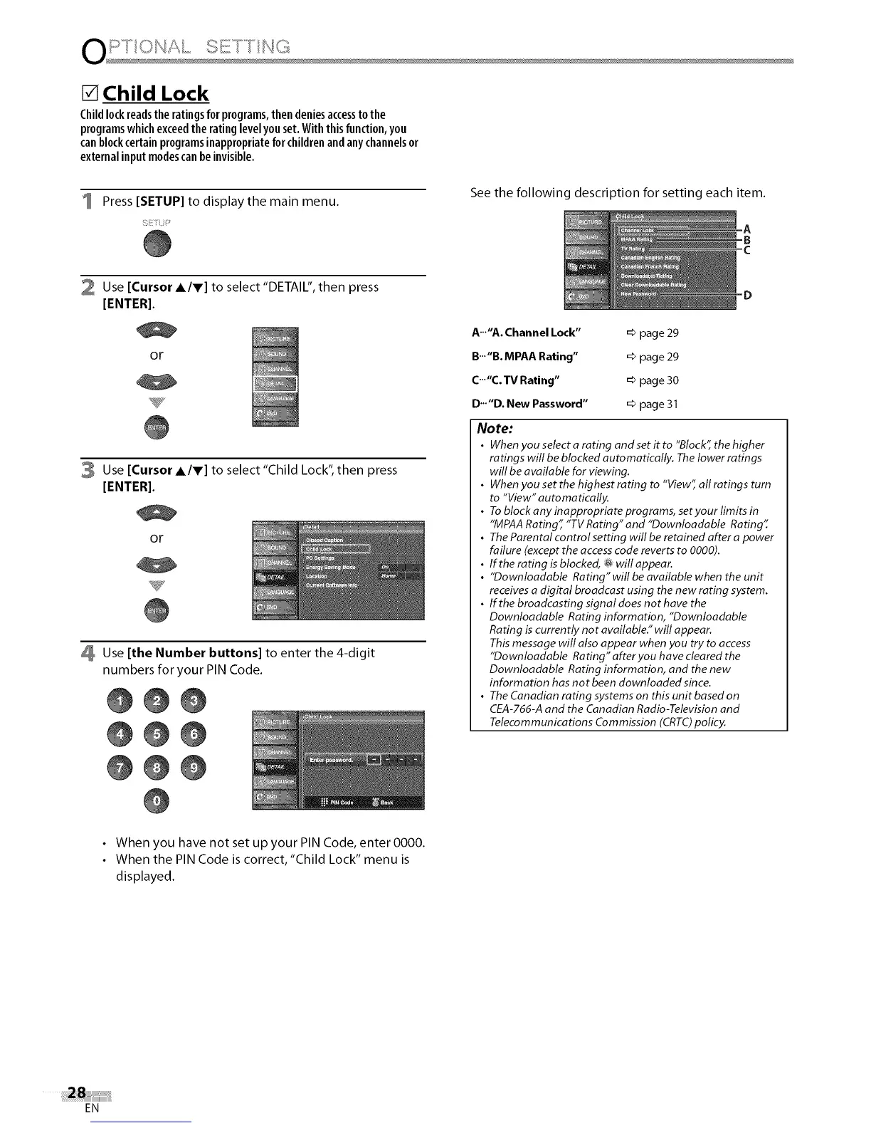 • "Downloadable Rating" will be available when the unit