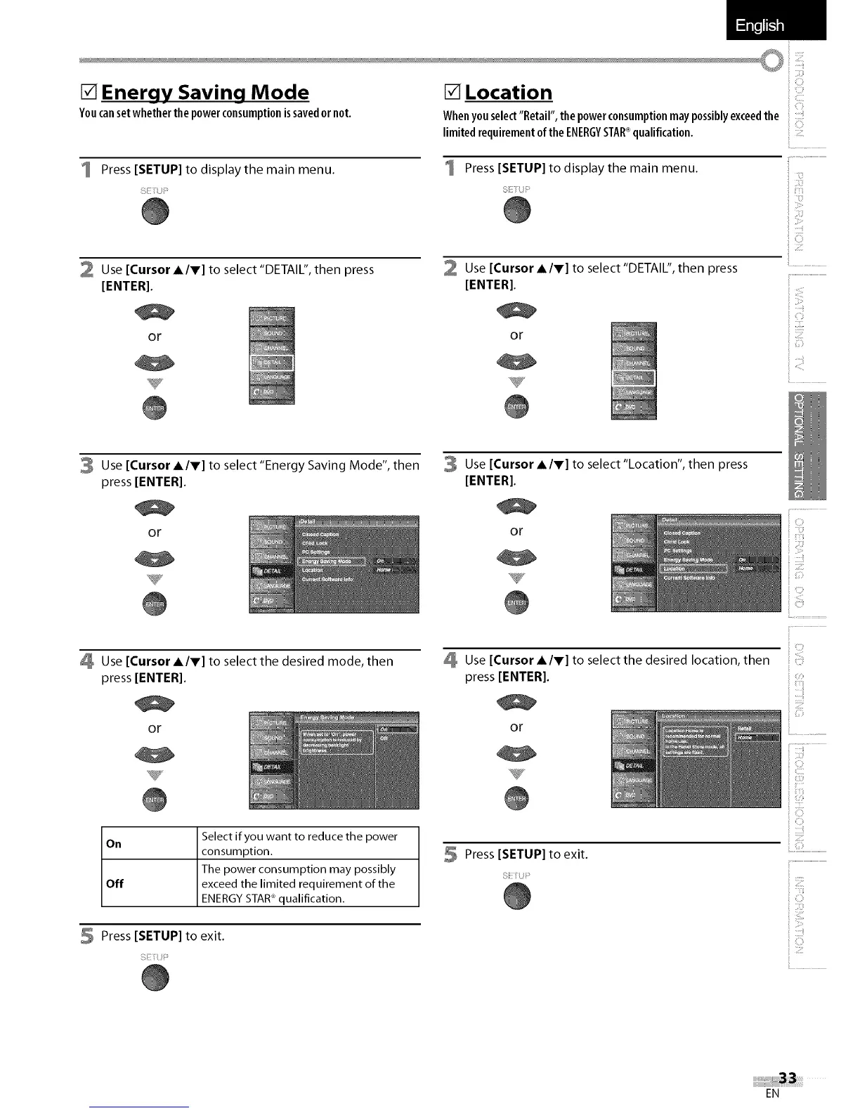 3 Use [Cursor A/V] to select"Energy Saving Mode", then