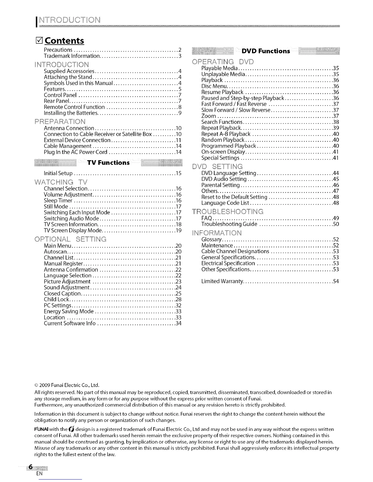 Misuse of any trademarks or any other content in this manual is strictly prohibited. Funai shall aggressively enforce its intellectual property