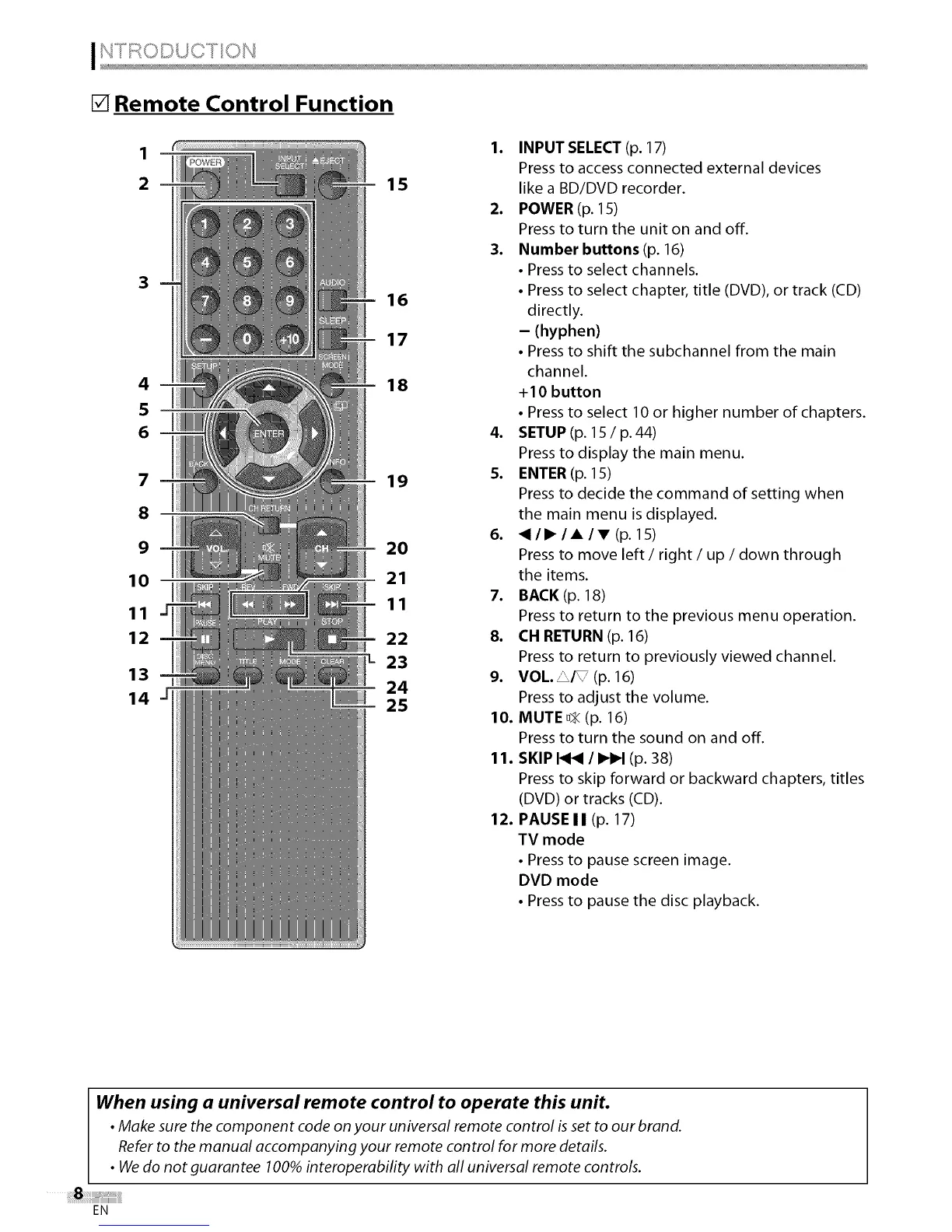• Wedo not guarantee 100%interoperability with all universal remote controls.