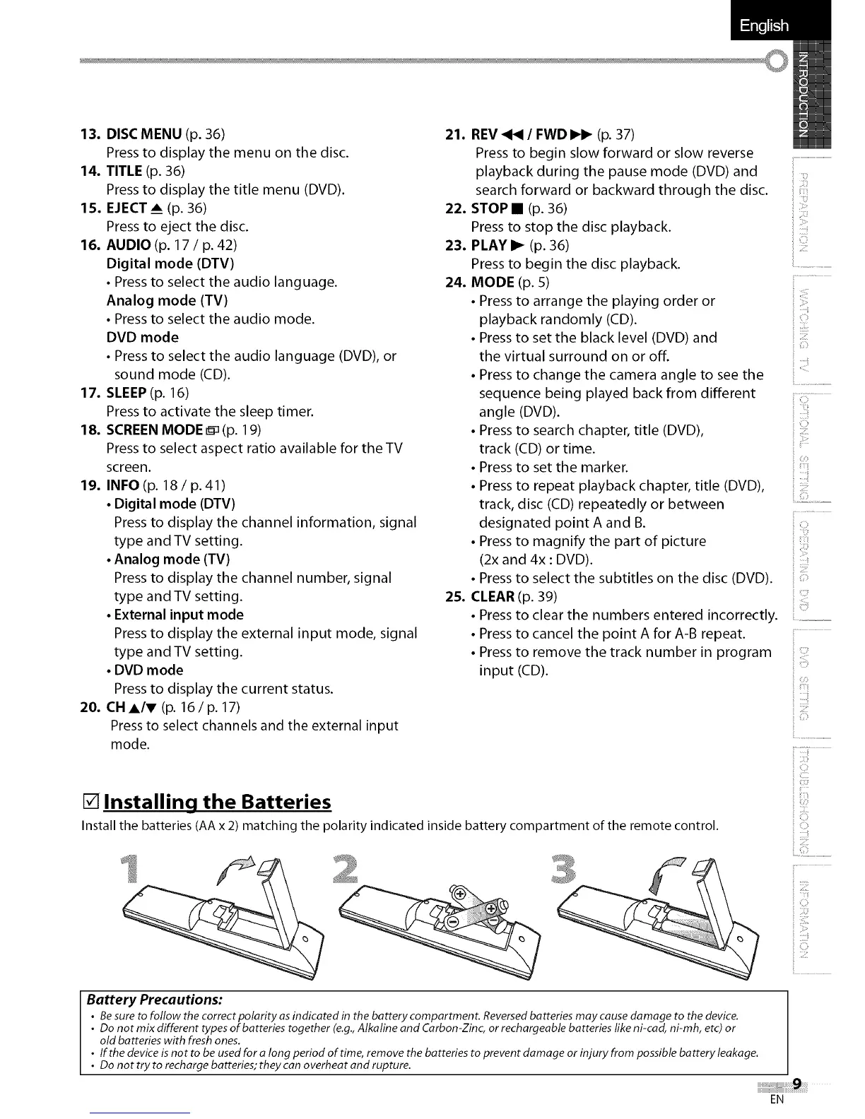 • Do not mix different types of batteries together (e.g., Alkaline and Carbon-Zinc, or rechargeable batteries like ni-cad, ni-mh, etc) or