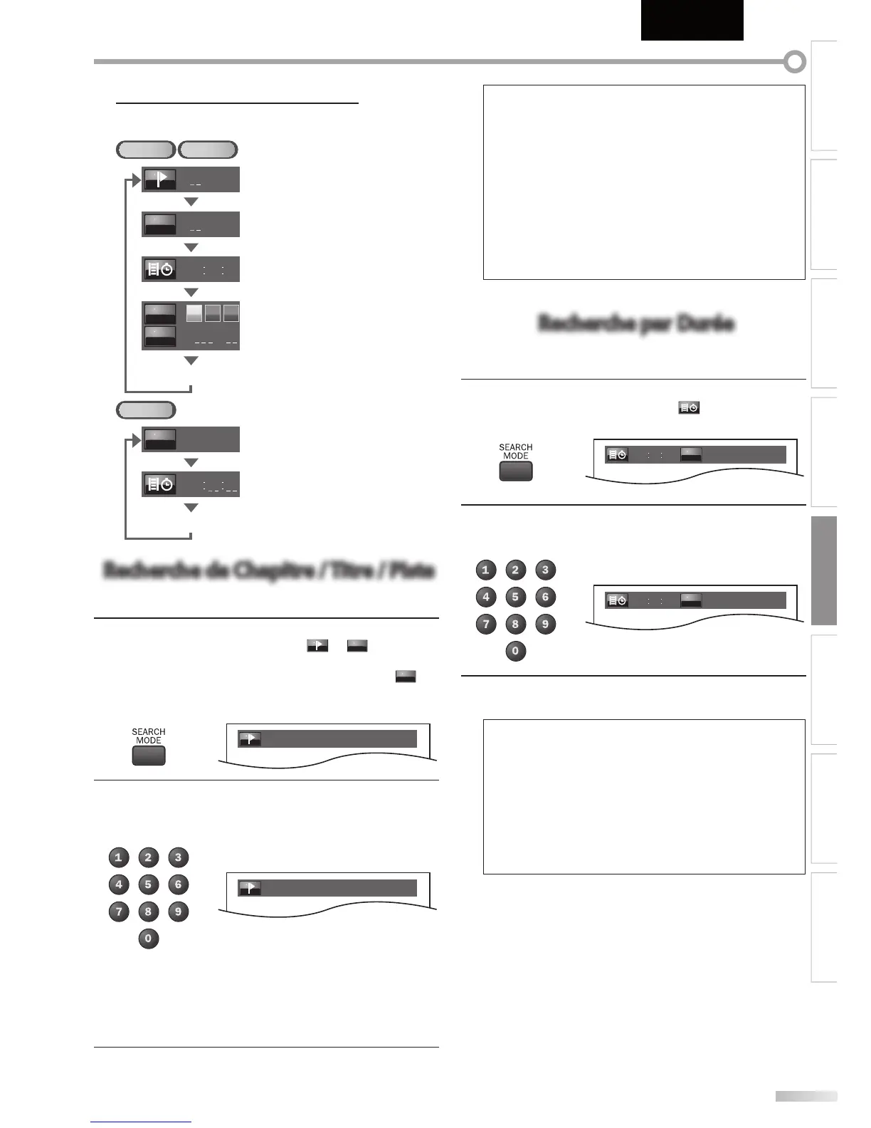 • Sur les BD/DVD, la recherche de chapitre ou de titre ne peut