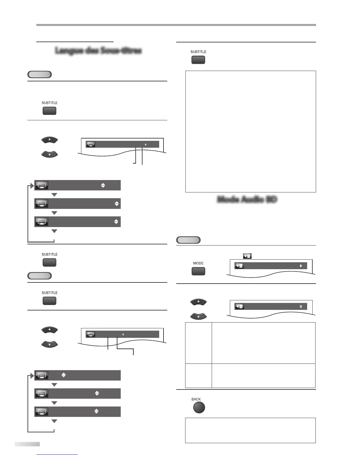 Lors de la lecture, appuyez sur [SUBTITLE] à plusieurs