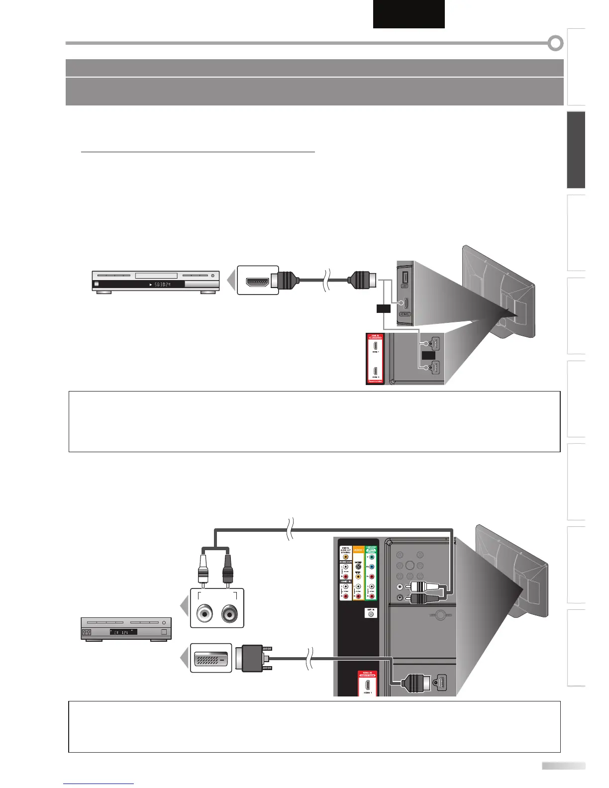 • La conexión HDMI-DVI también requiere conexiones de cable de audio RCA separada.