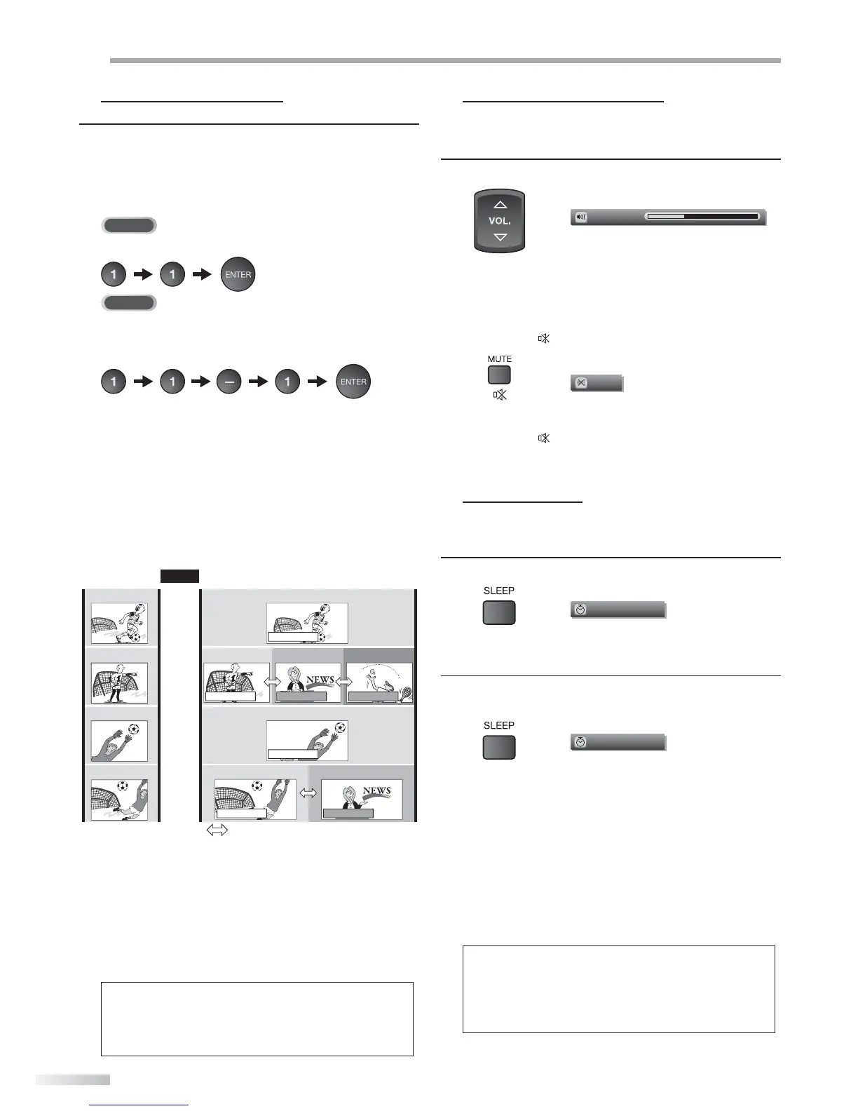 Sleep timer display appears on the TV screen.