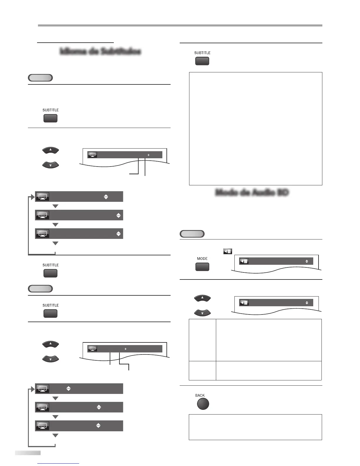 • El expulsa de del disco cancelará el ajuste de los subtítulos.