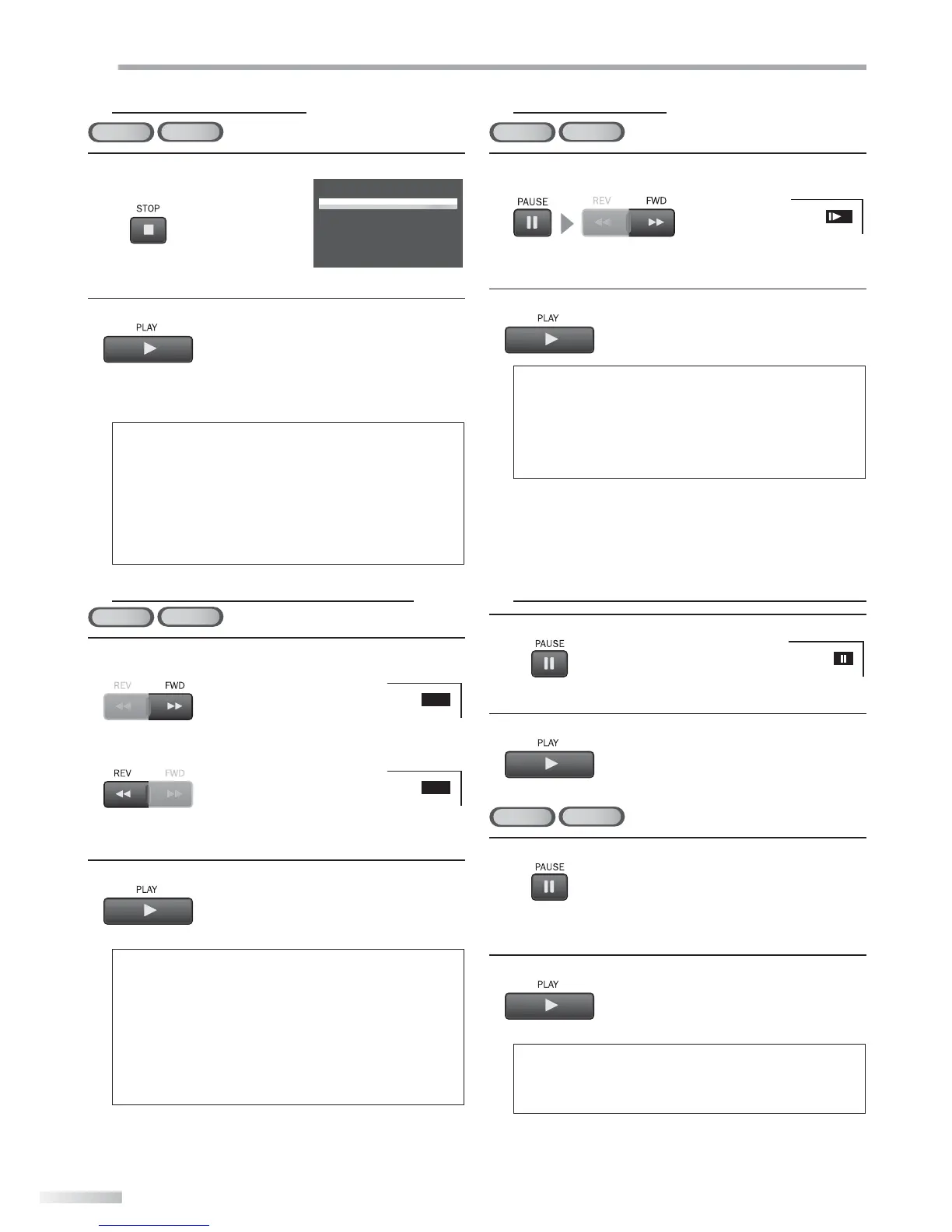 • Every time you press [PAUSE F], playback will
