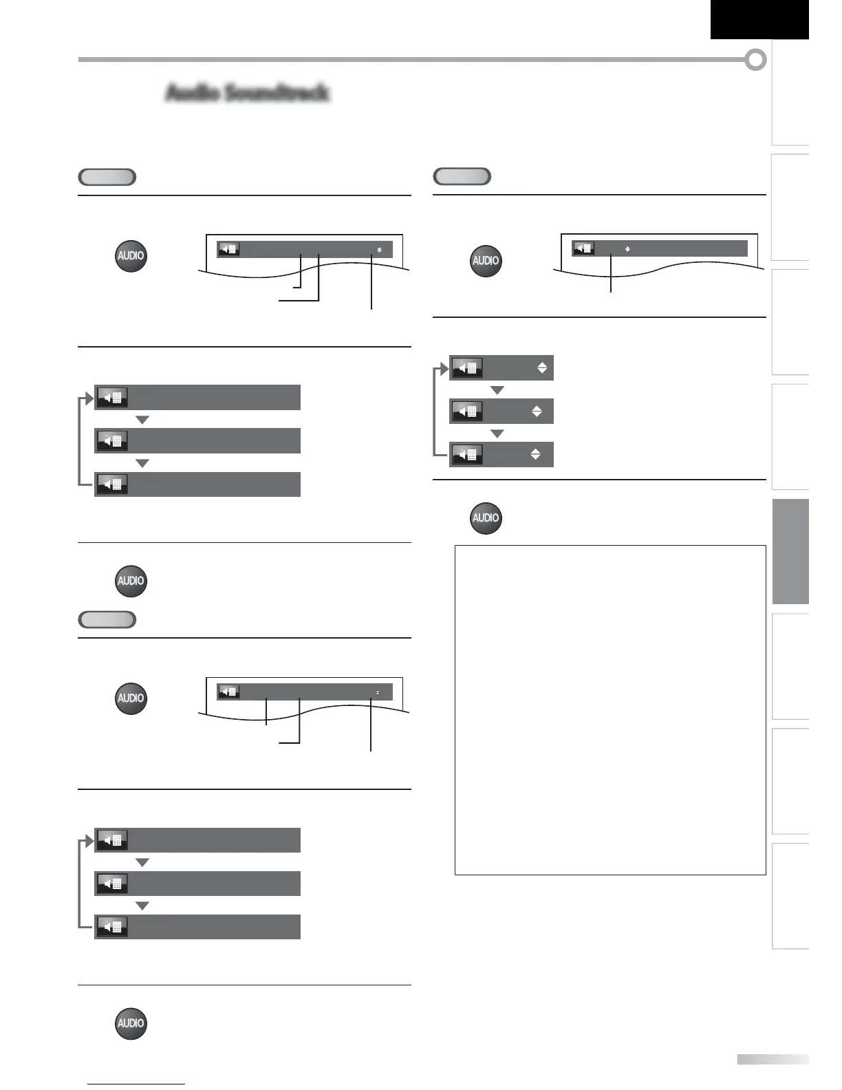 During playback, press [AUDIO] repeatedly to display