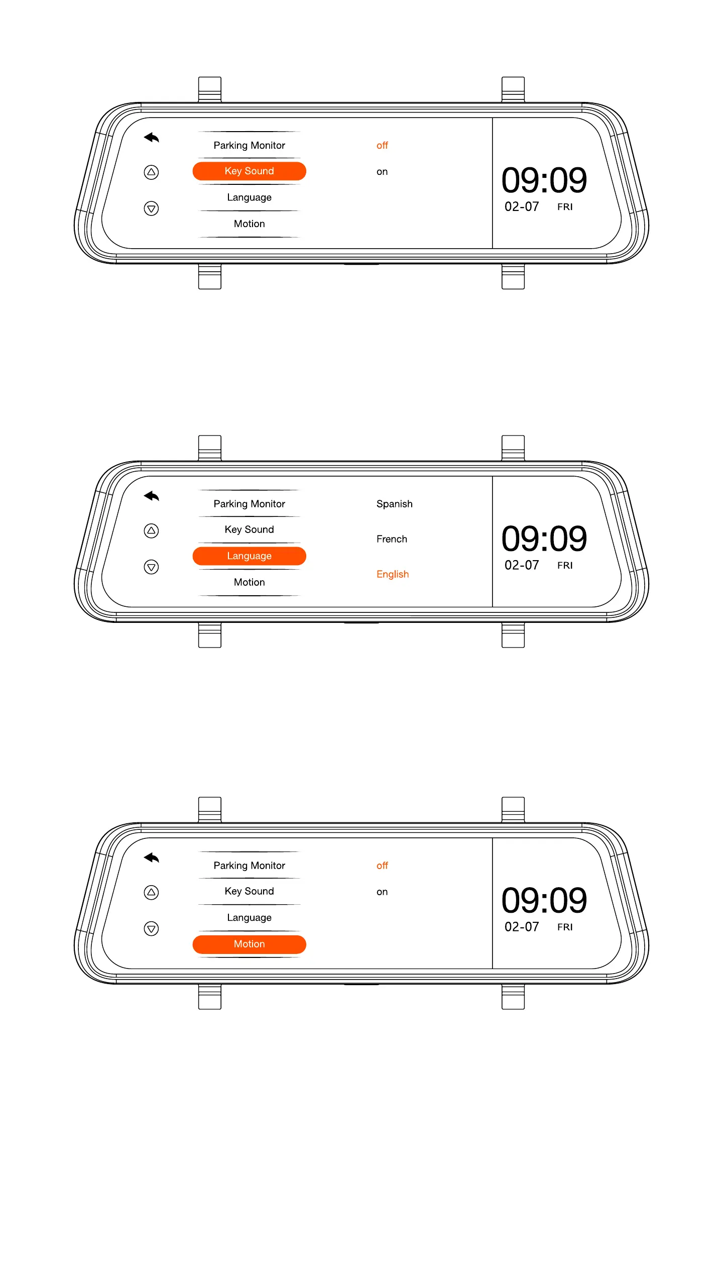 Motion: Turns on and off motion detection.