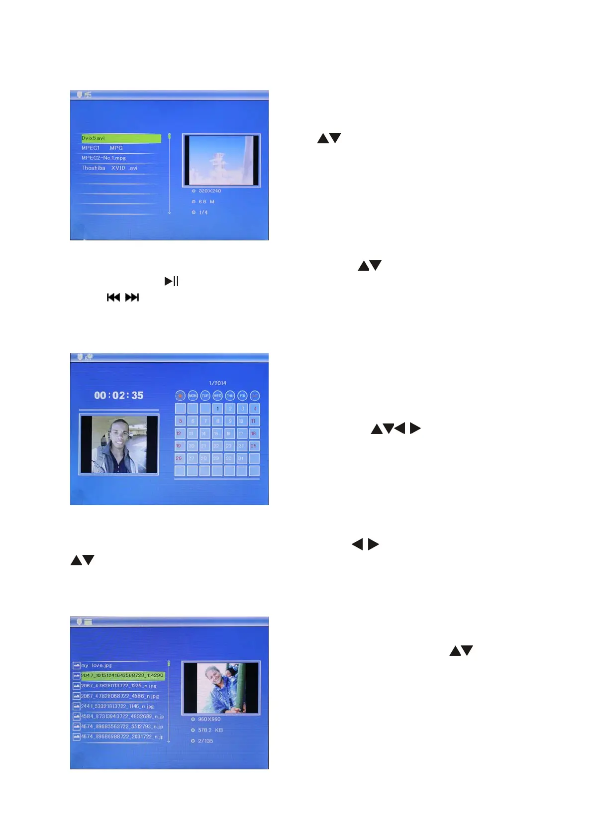 In the video playing mode, press SETUP, Then press for fast forward and fast