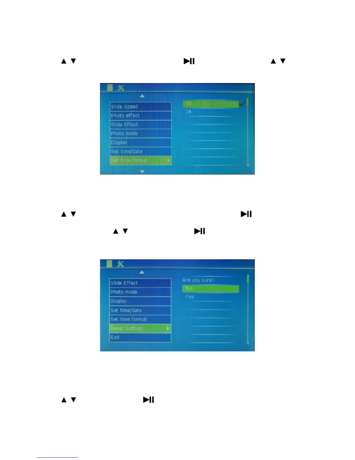 setting NO and YES. Press to select Yes. Then, enter to confirm the selection. Finally, press