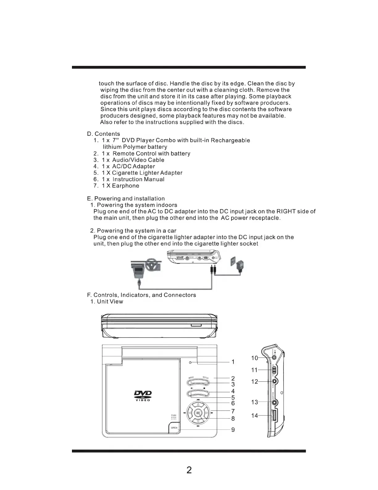Sylvania SDVD 7014 - Powering and Installation; Controls, Indicators, and Connectors