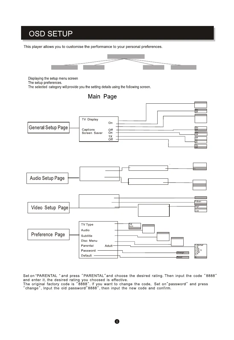 Sylvania SDVD1041C - OSD Setup; Main Setup Pages; Parental and Password Settings