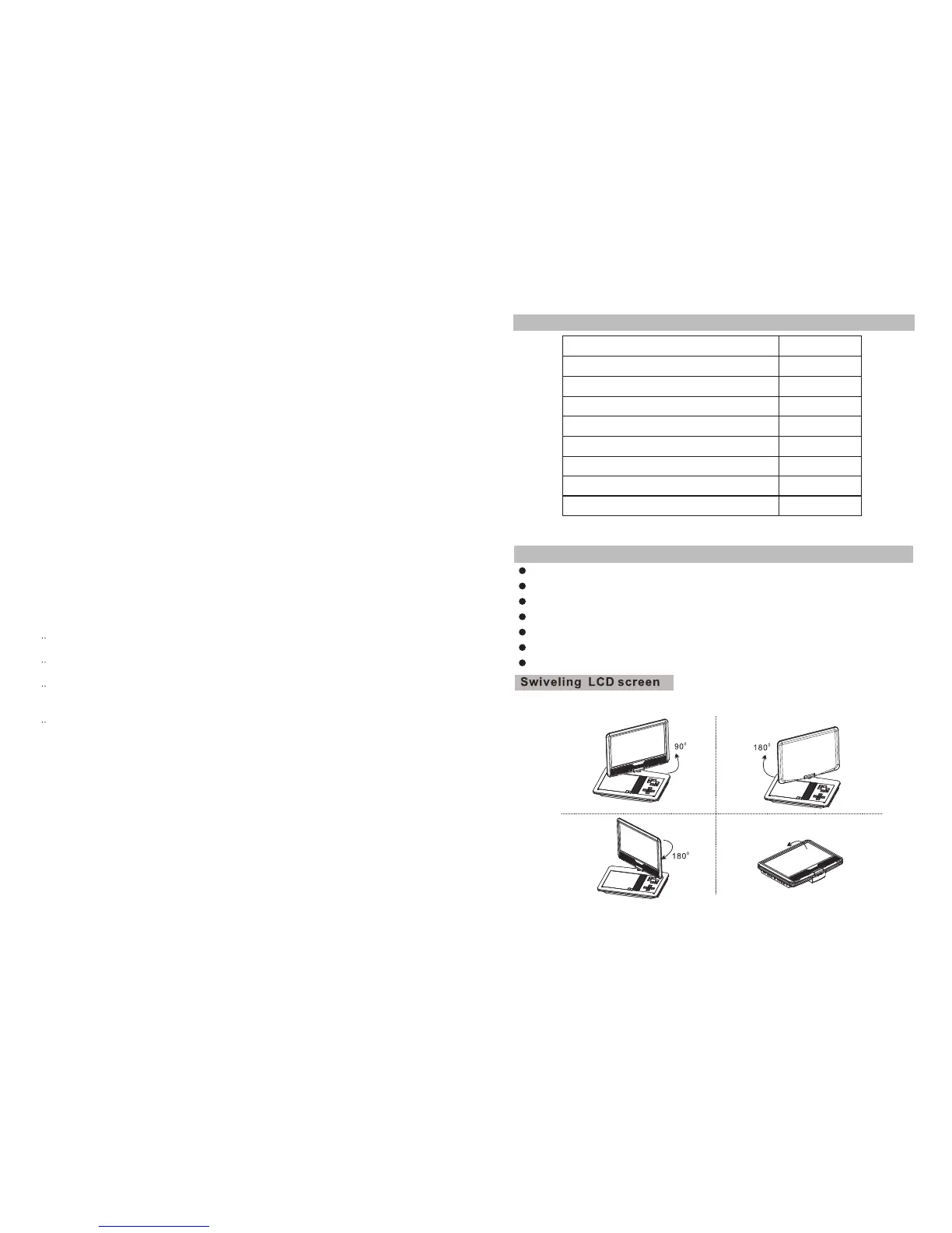 You can swivel the LCD screen of this player clockwise a maximum of 180 for use.°