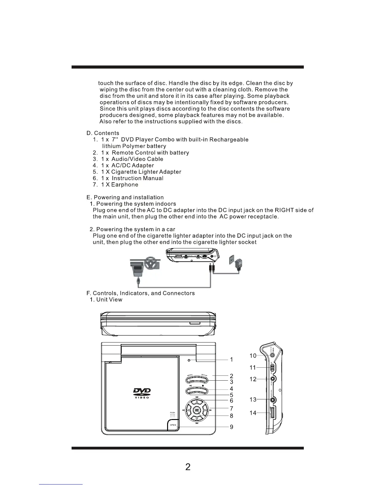 Sylvania SDVD7014 - Package Contents and Initial Setup; Powering and Installation Guide; Controls, Indicators, and Connectors Overview