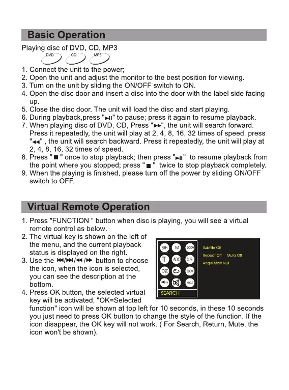 Sylvania SDVD7750 - Basic Operation; Playing disc of DVD, CD, MP3; Virtual Remote Operation