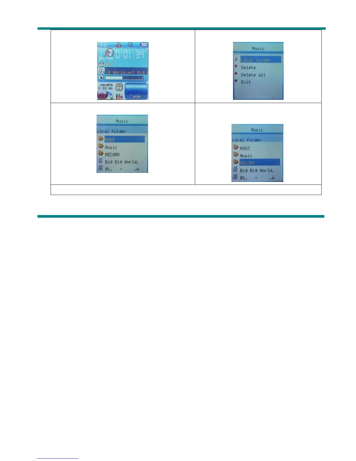 Please note: You can set folders independently in Music / Recorder / Play mode