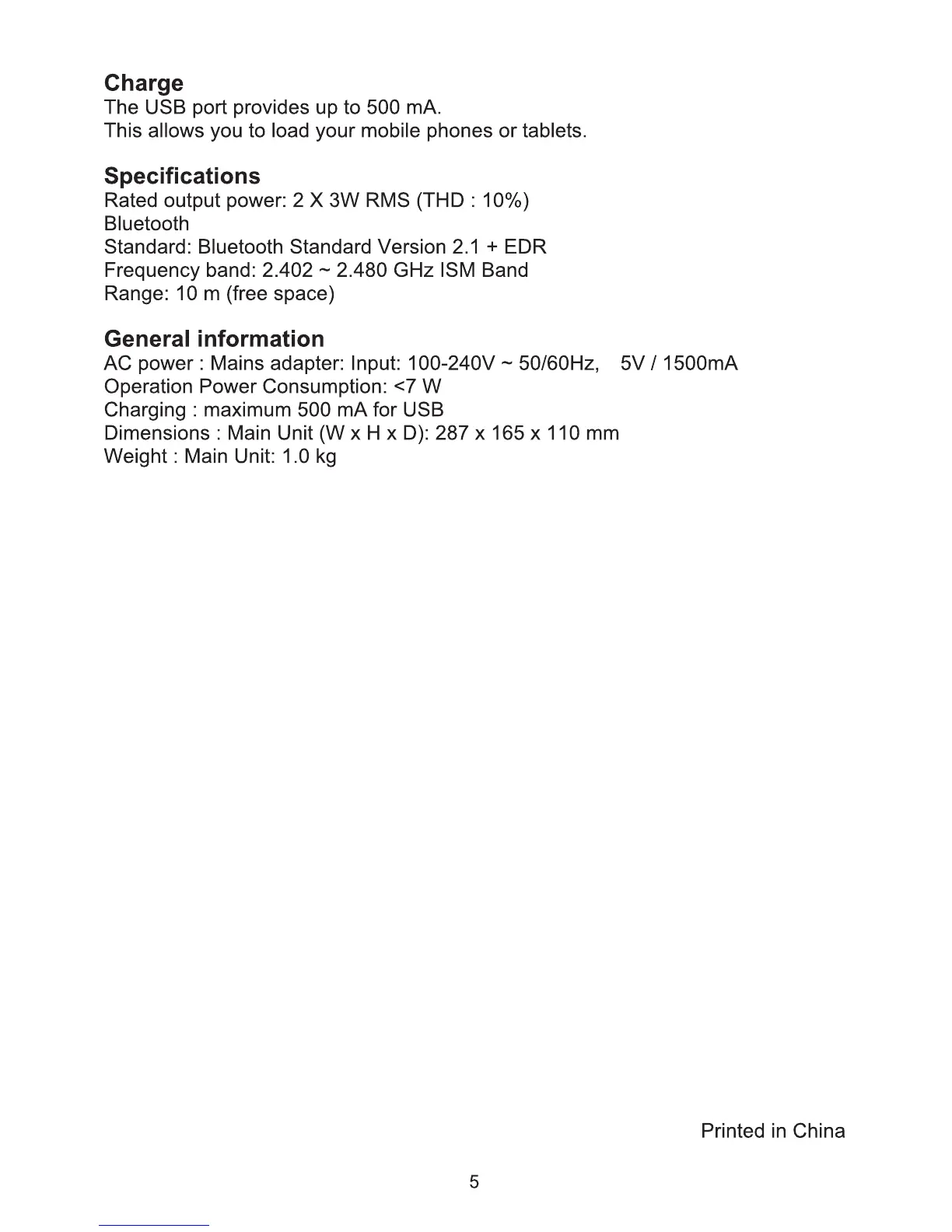 Sylvania SP5686 - Technical Specifications and Product Details; USB Charging Capabilities; Detailed Product Specifications; General Product Information