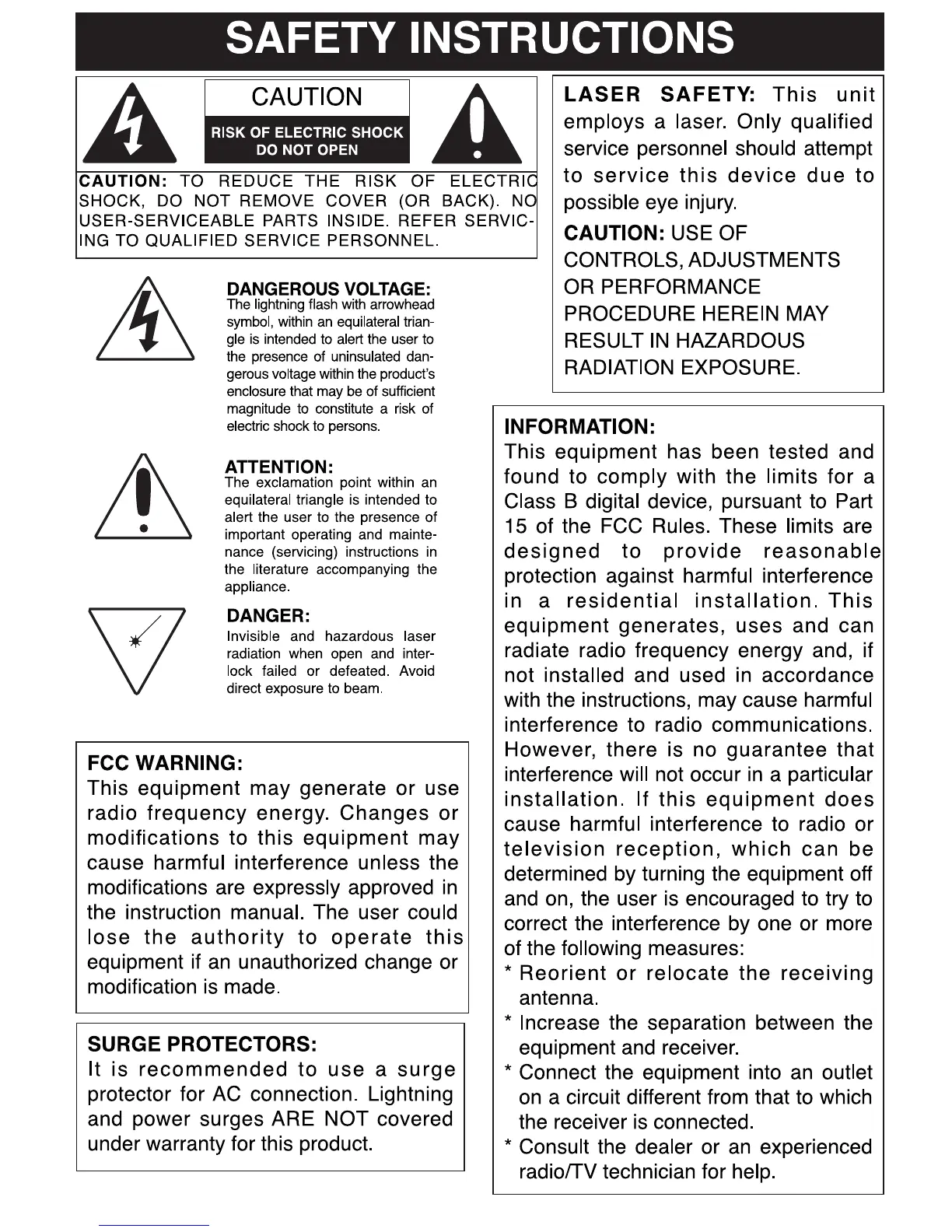 Sylvania SP613 - Safety Instructions; General Safety Precautions; Regulatory and Interference Information
