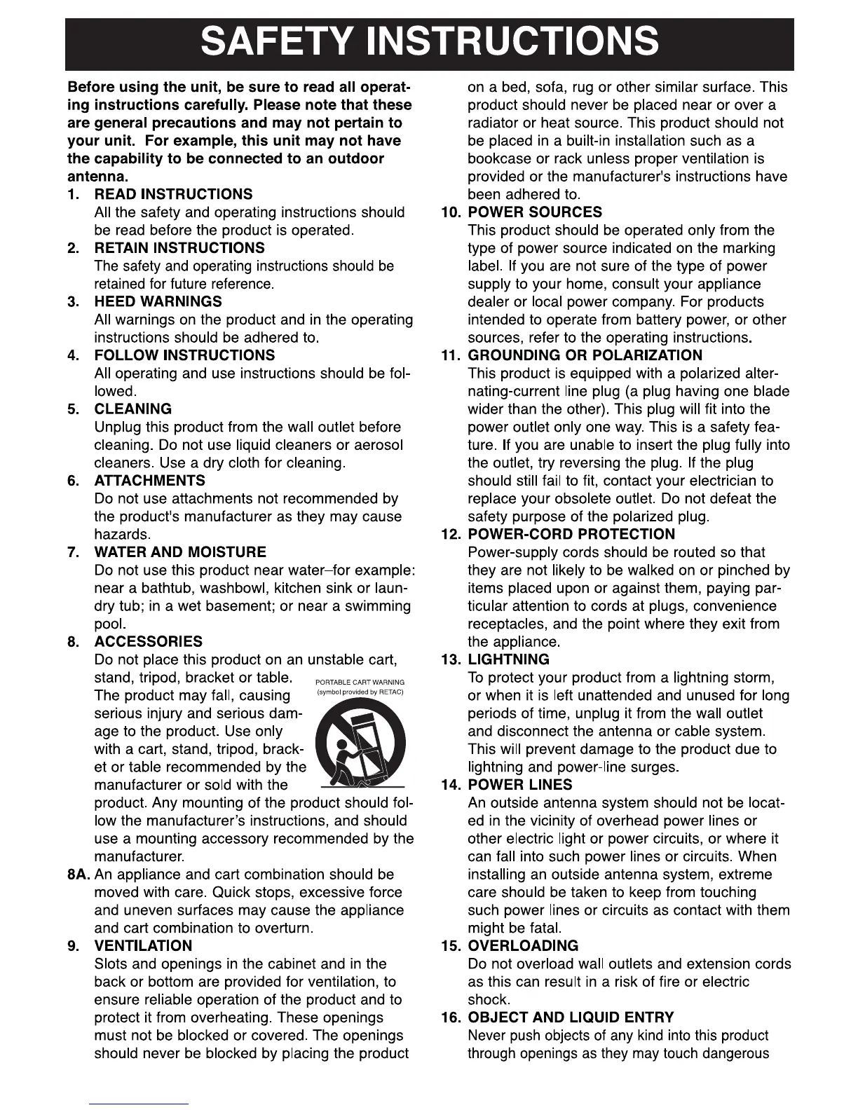 Sylvania SP613 - Operational Safety Guidelines; Electrical Safety and Environmental Precautions