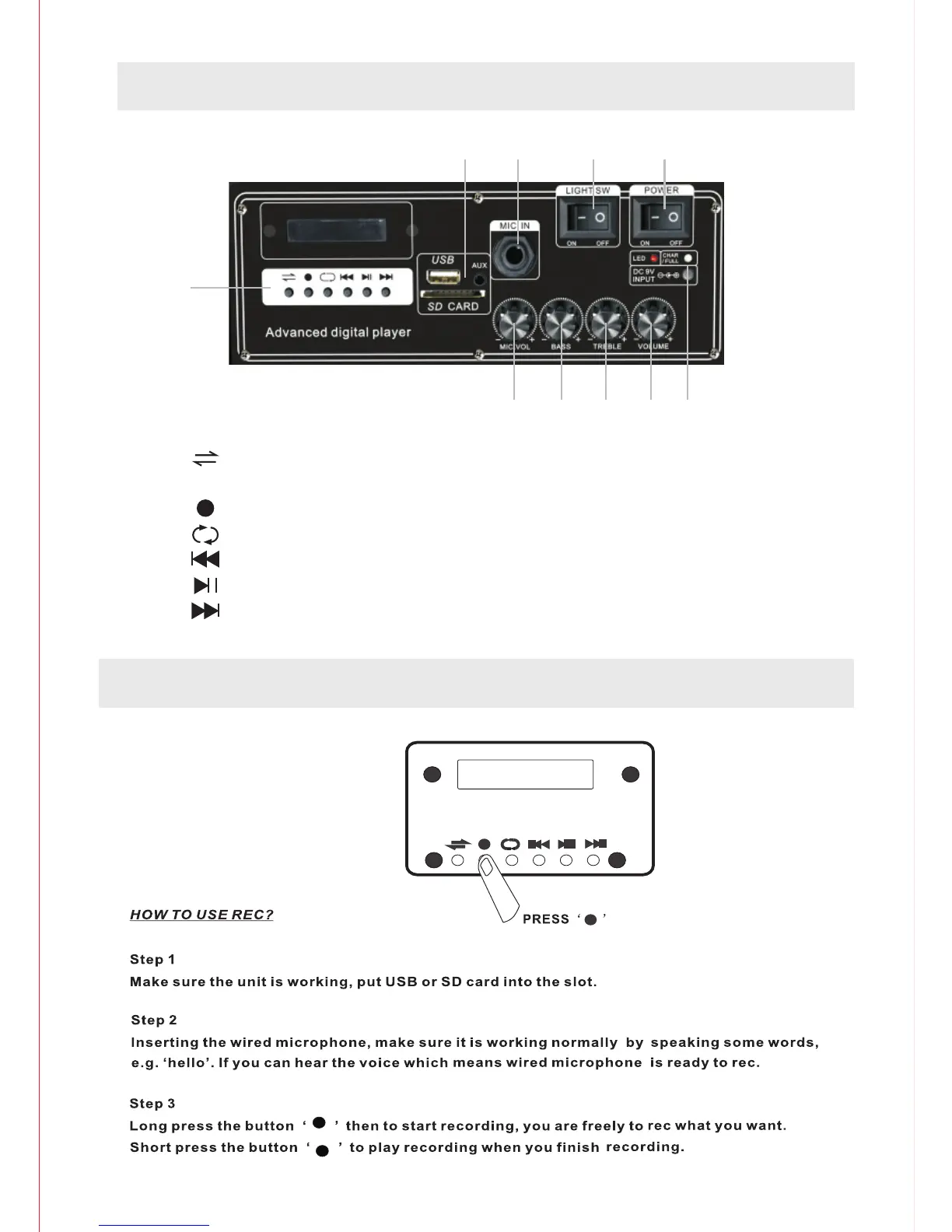 Sylvania SPA151 - PANEL FUNCTION DECLARATION; REC FUNCTION DECLARATION