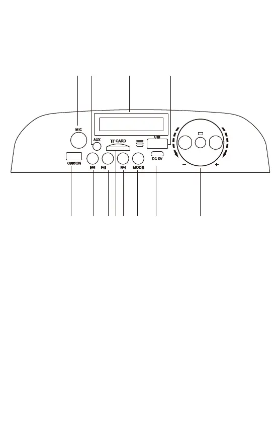 6. Mode (Bluetooth, FM, TF, USB, LINE IN)
