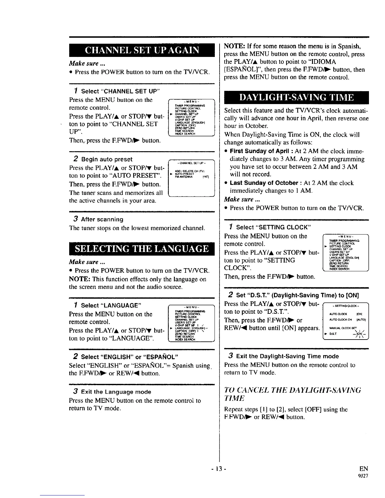 [ESPAIq'OL]", then press the EFWD/)) button, then
