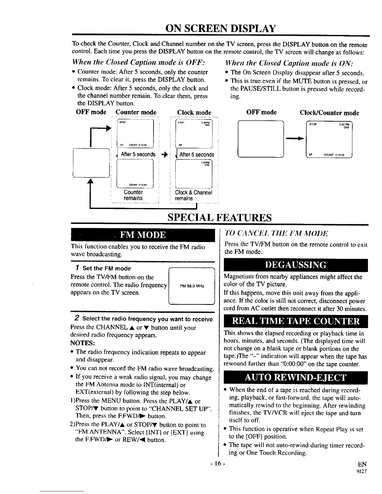 To check the Counter, Clock and Channel number on the TV screen, press the DISPLAY button on the remote