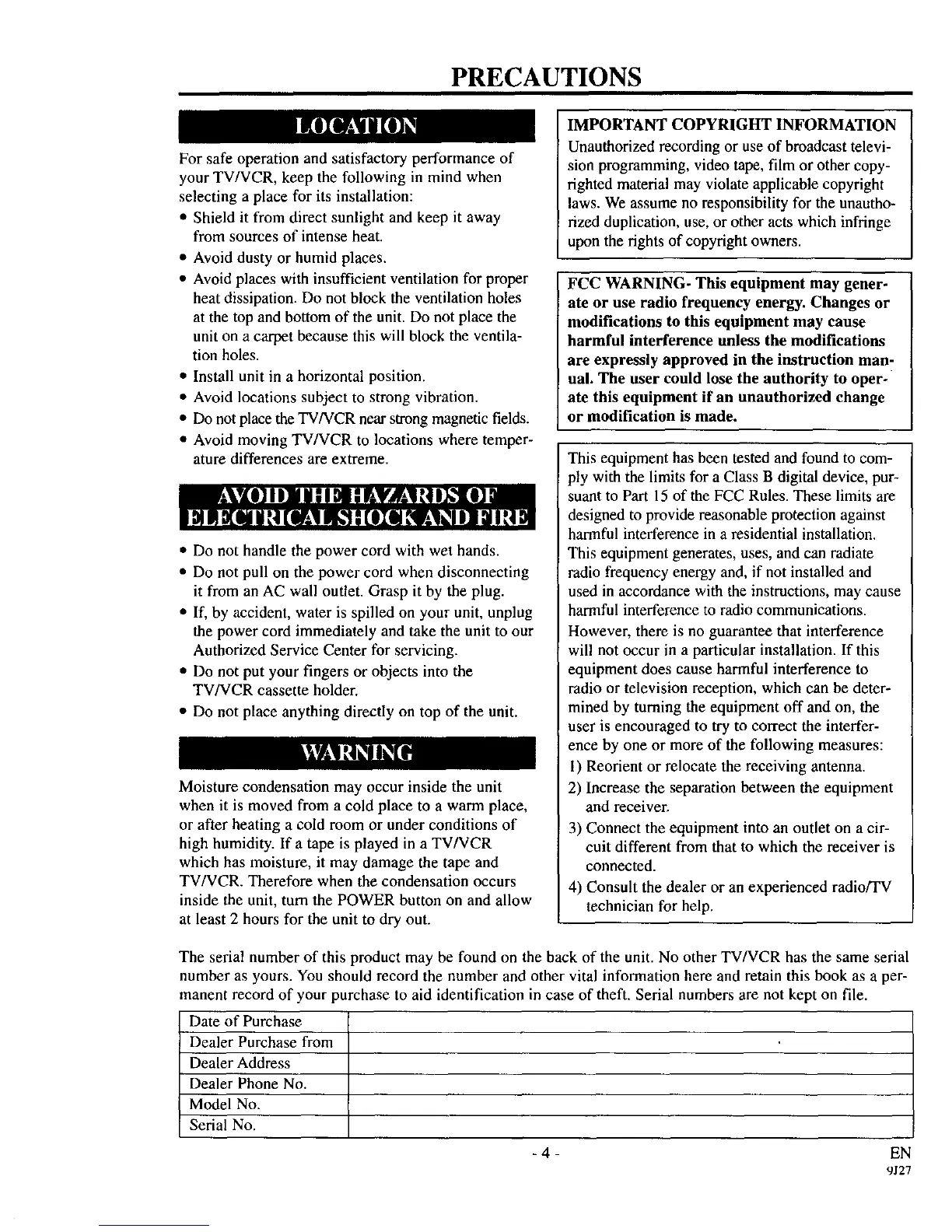 manent record of your purchase to aid identification in case of theft. Serial numbers are not kept on file.
