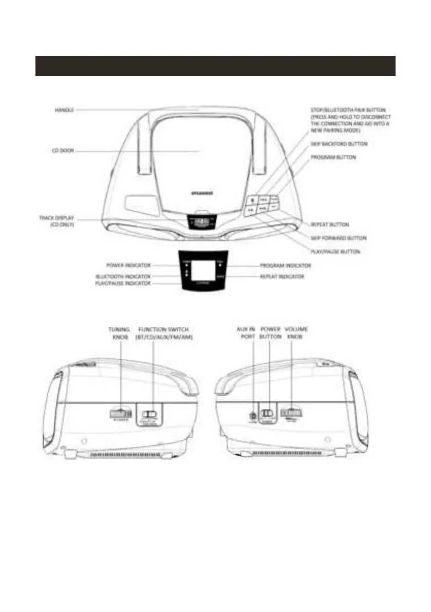 Sylvania SRCD1037BT - Control Location; Top and Side Views