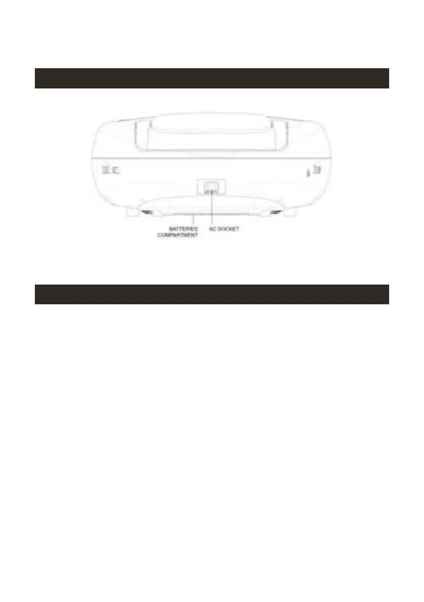 Sylvania SRCD1037BT - Rear View; Power and Battery Operation; Connecting AC Power; Battery Operation