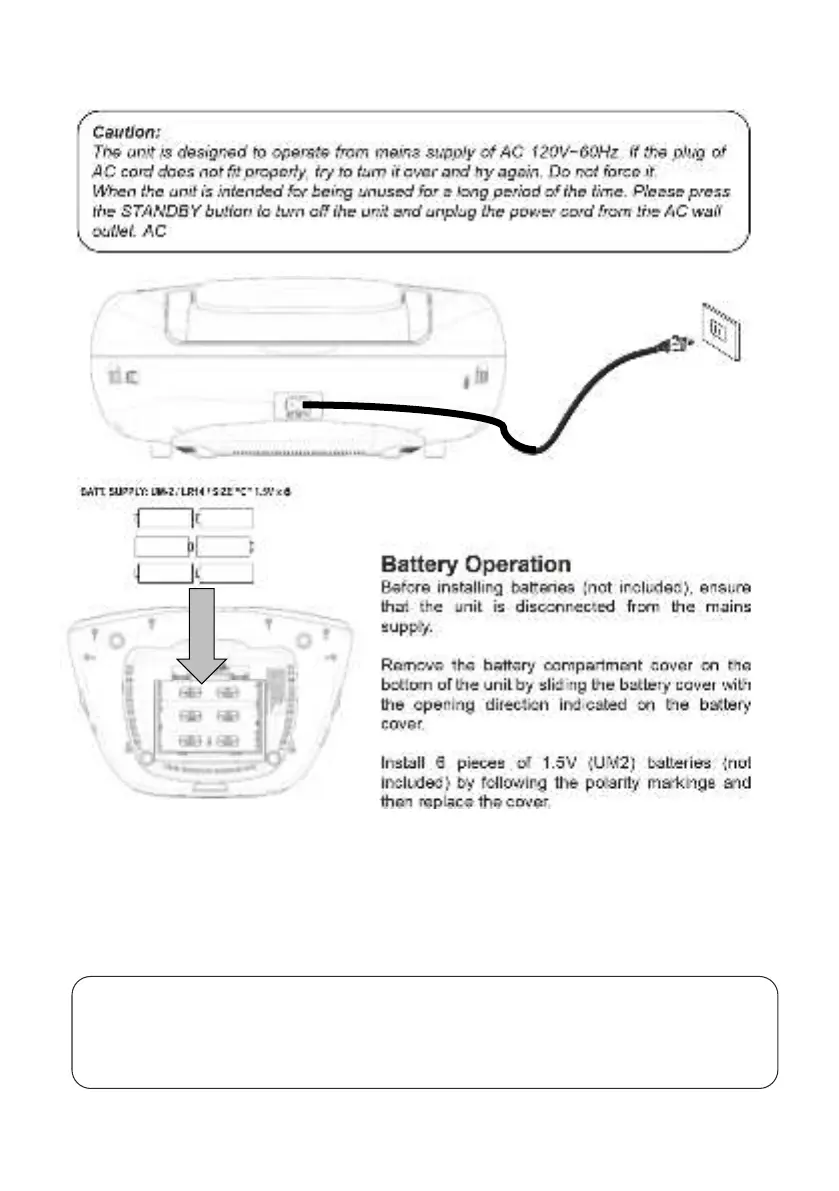 the AC wall outlet first and then remove the AC cord from the socket at the back of the main