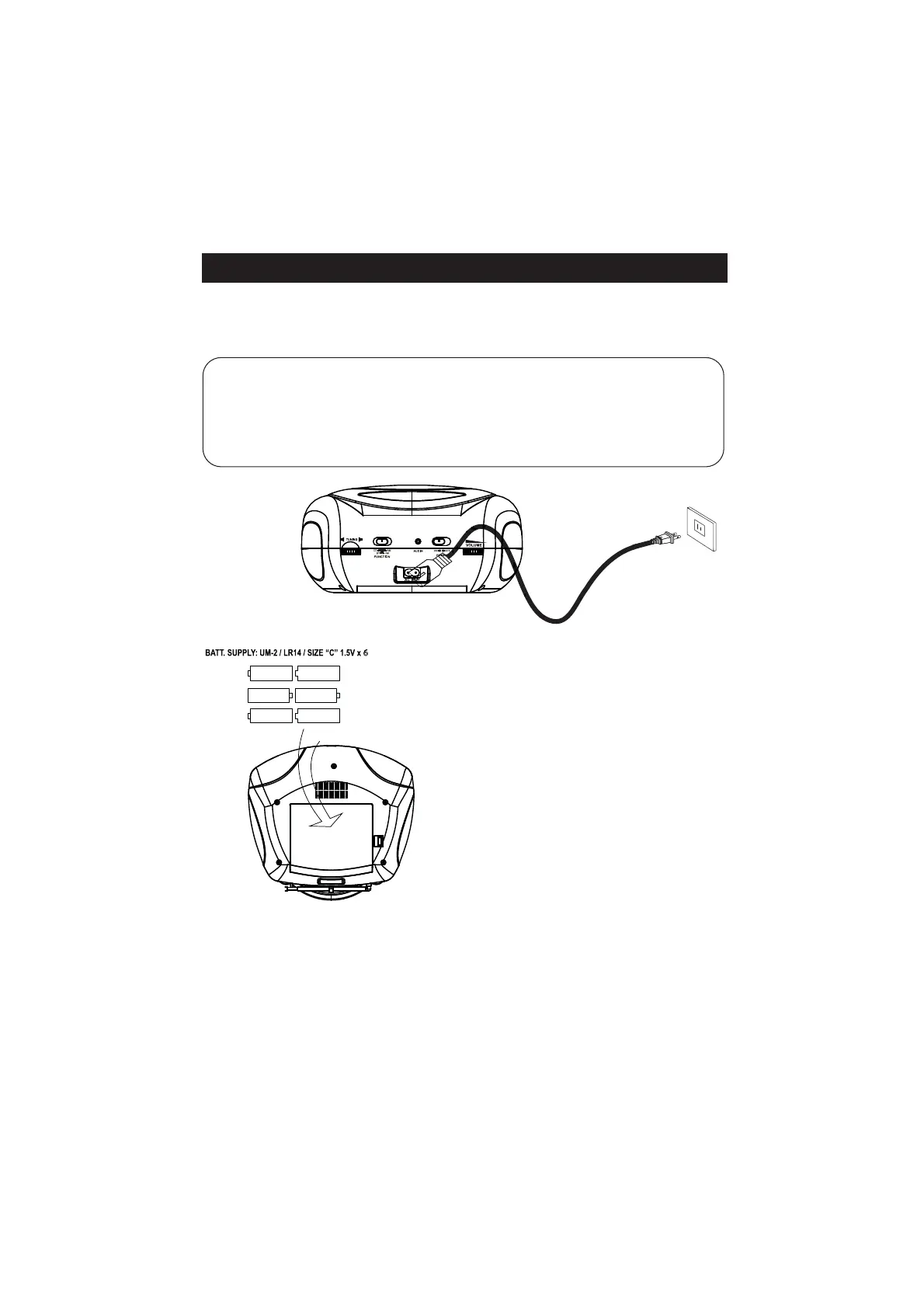Connect the small end of AC cord to the socket at the back of the main unit and insert the